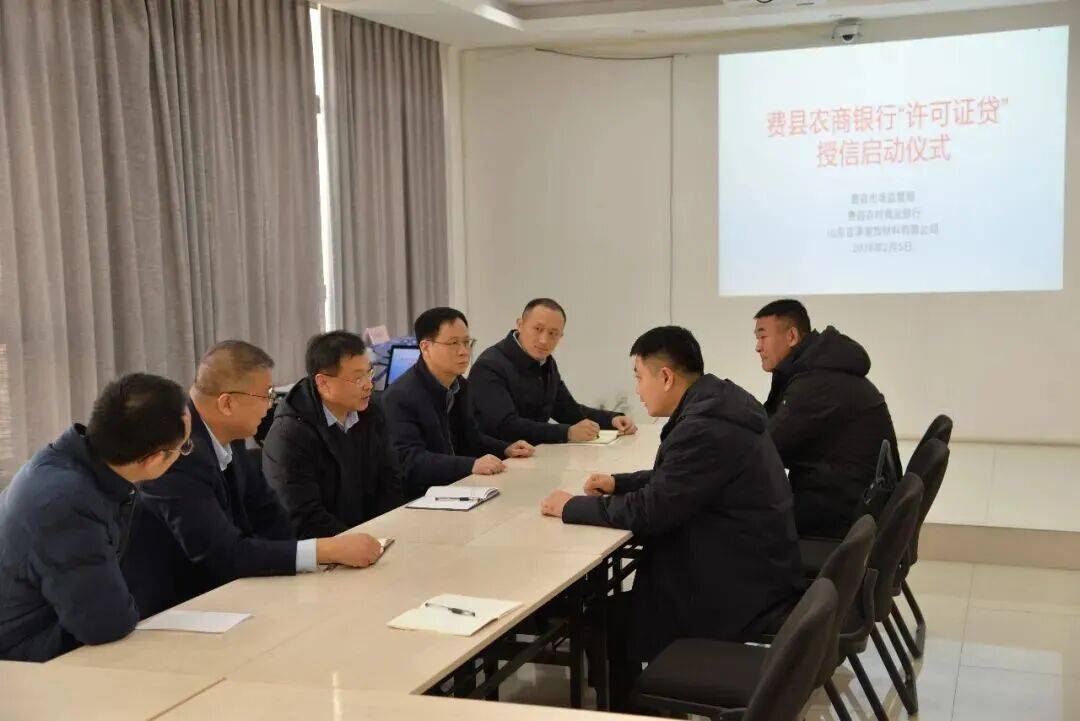 近日,费县市场监管局联合费县农商银行在山东吉承装饰材料有限公司举行“许可证贷”授信启动仪式。仪式上,县农商行向山东吉承装饰材料有限公司正式授信并发放生产许可证贷款。