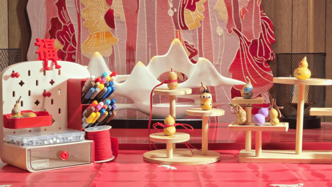 不只是吃饭住宿!每天9:00-23:00可亲手体验妙笔绘葫芦,彩韵寓福禄,亲手将精心绘制的葫芦用红绳绑成精致挂饰,让福运满盈。沉浸式打卡传统年俗,在笔尖灵动处解锁祥瑞新春,深度领略非遗魅力,让传统年味焕发全新活力!让团圆多一份文化仪式感。
