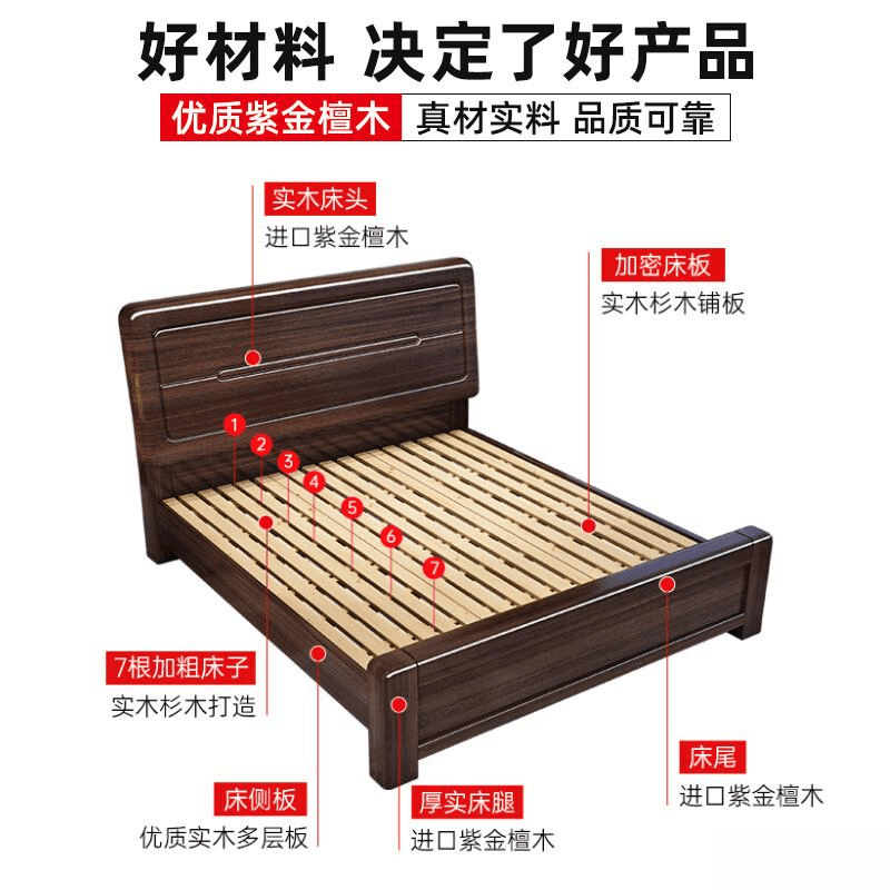 温馨睡眠体验:采用非洲进口紫金檀木,打造自然舒适的睡眠环境。床身高度可调节,配合22cm床垫,为您量身定制最佳睡眠姿势。