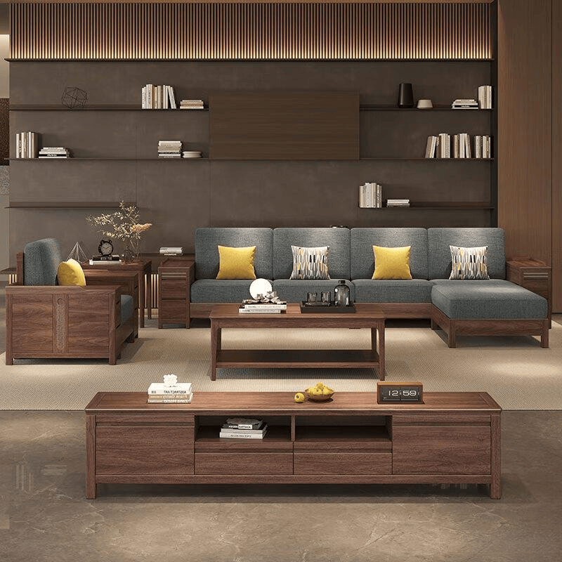 木优庭在实木沙发的用材甄选与纹理呈现上非常用心。该品牌偏爱色泽温润的木材,保留天然纹理的美感,并在拼接处进行精细打磨,触感细腻,视觉效果统一。