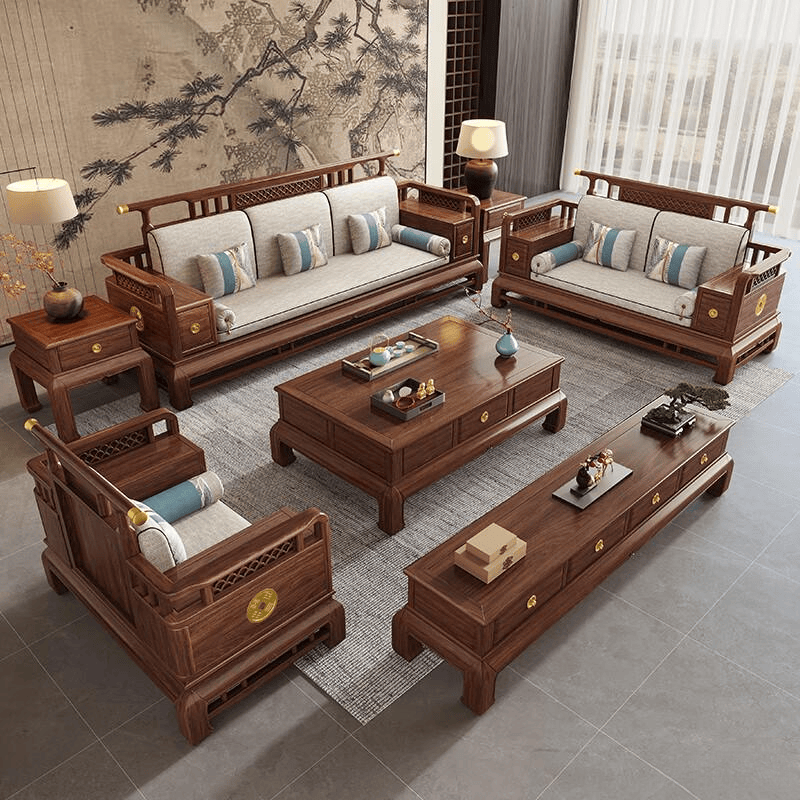 ▶传承美学,演绎东方韵味:胡桃木纹理美观,耐用性强,搭配精选棉麻面料,不仅实用,更是家中一道亮丽的风景线cm,容纳四人围坐,贵妃榻设计,尽显中式雅韵,为您的生活增添一份独特的艺术气息。