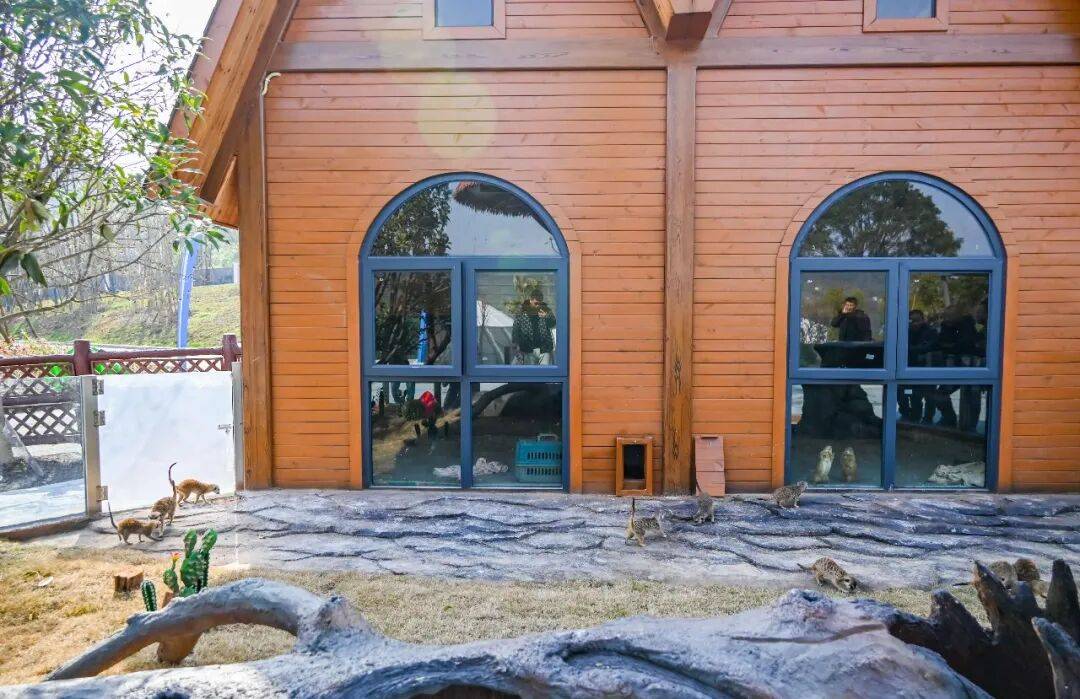 沙土地经过特意压实,以模拟原生栖息地的土壤质感;中空树根和仙人掌则为细尾獴提供了躲藏和玩耍的空间。