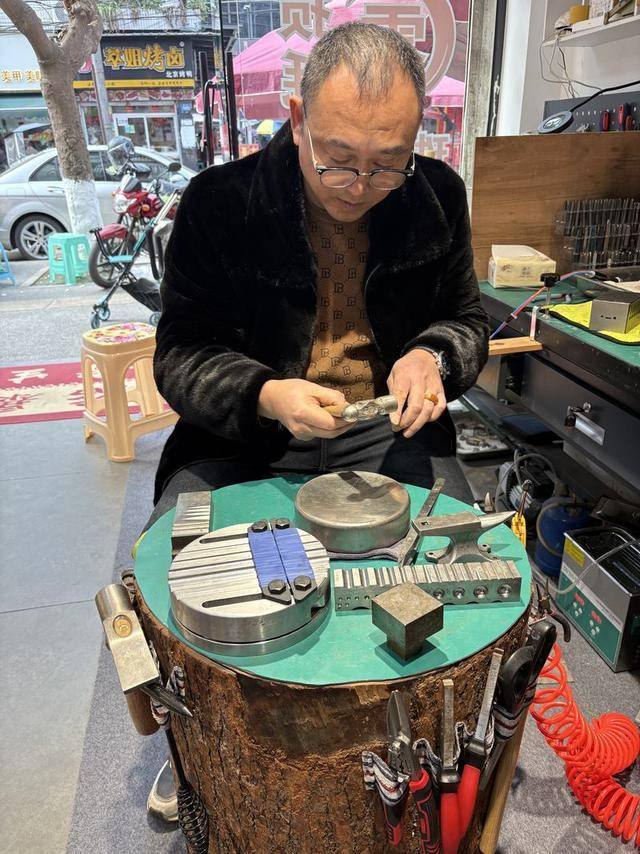 没学多久,伯父就把打金的家伙什儿塞给他,“你现在可以出师了。”12岁的熊师傅背着比自己矮不了多少的木头桩子,在街头摆起了地摊,甚至抢了伯父的生意,“那时候大家觉得好新奇嘛,12岁的小娃娃摆地摊敲敲打打的。”